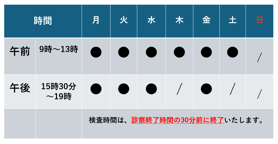 - 休診日:日祝日、木曜日午後、土曜日午後